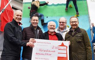 Als einer von bundesweit 19 Aktionstagen der Kampagne „NaturFreunde bewegen“ fand im Oktober der „Tag der Regionen“ des Fachbereichs Natursport der mittelfränkischen NaturFreunde statt. Fünf regionale Ortsgruppen präsentierten sich und die neue mobile Kletterwand konnte ausprobiert werden. Die Sparkasse Nürnberg nutzte die Aufmerksamkeit, um öffentlichkeitswirksam einen Förder-Scheck über 2.000 Euro an die mittelfränkischen NaturFreunde zu übergeben. „Wir kennen die NaturFreunde schon lange und fördern gerne soziales Engagement im Jugendbereich. Da bot sich der gut besuchte Tag der Regionen an“, so Otfried Bürger von der Sparkasse Nürnberg.
