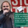 Regina Schmidt-Kühner, stellvertretende NaturFreunde-Bundesvorsitzende und Rednerin in Stuttgart betonte die grundlegende Weichenstellung, die hinter der Entscheidung über CETA und TTIP liegt: „Diese Freihandelsabkommen werden von den Befürwortern gerne als notwendige Antwort auf die Herausforderungen der Globalisierung hingestellt. Tatsächlich sind sie aber nichts anderes als eine Anpassung an transnationale Konzerninteressen, die die Politik – ähnlich wie in der Finanzkrise – faktisch in Geiselhaft nehmen.“ Regina Schmidt-Kühners Rede finden Sie hier im Wortlaut.