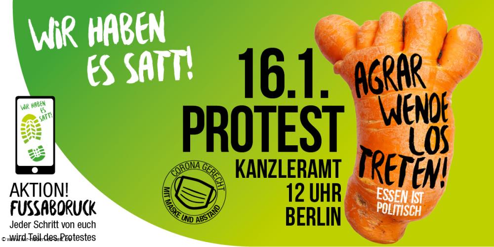 Jeder Fußabdruck wird Teil des großen Protestbildes am 16. Januar in Berlin. Die Fußabdrücke werden von den Organisator*innen der Demo vor dem Kanzler*innenamt in Szene gesetzt und zeigen dort, wie viele Menschen trotz und gerade wegen der Pandemie für eine zukunftsfähige Agrarpolitik kämpfen.