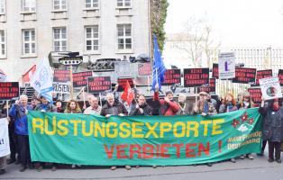 Aus Anlass der umstrittenen Herren-Fußball-Weltmeisterschaft in Katar protestieren wir mit einer bildstarken Aktion gegen Waffenexporte an das katarische Regime.